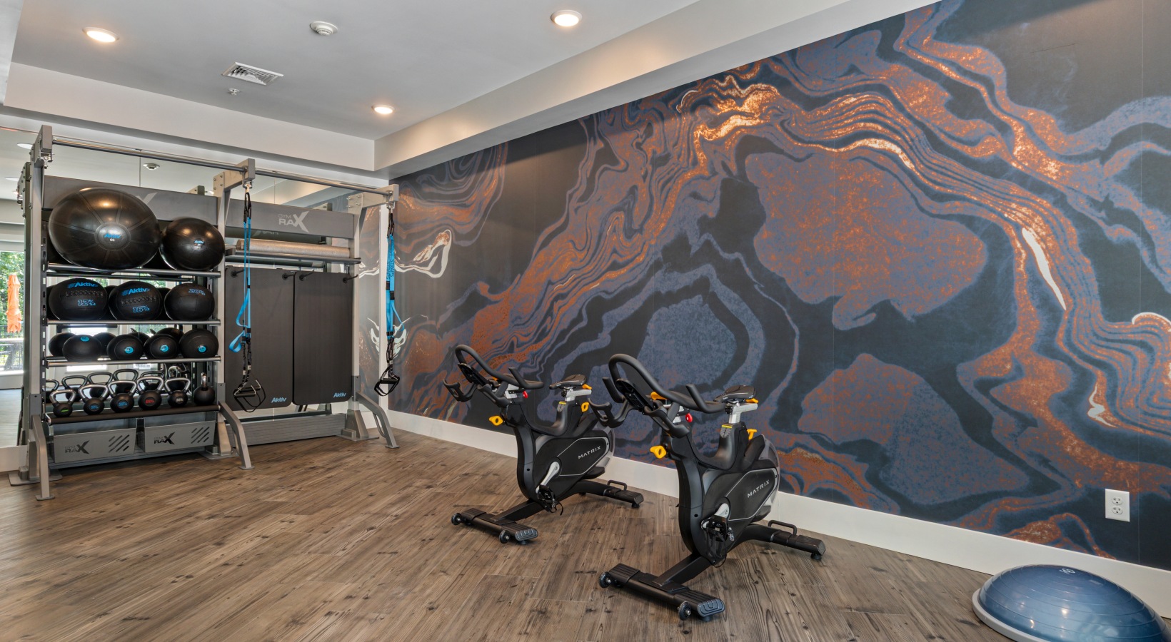 • a gym with exercise equipment